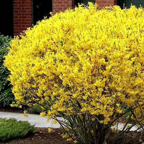Высота взрослого растения достигает 2,5-3 м, диаметр составляет 3 м. Крона форзиции сорта Линвуд раскидистая и плотная.