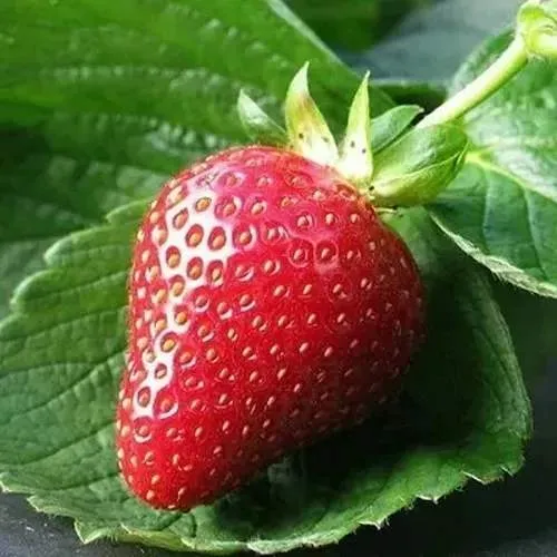 Куст клубники Альбион среднерослый, крепкий и имеет темно-зеленые, широкие листья, которые придают ему особый шарм. Ягоды этого сорта обладают насыщенным ярко-карминным цветом и глянцевой поверхностью. Форма ягоды коническая, а их размеры крупный - от 30 до 50 грамм.