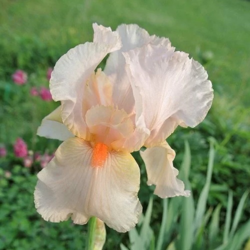 Пати Дресс — выбор для тех, кто не гонится за броскостью, но умеет ценить нюансы. Абрикосовый оттенок, бархатная фактура лепестков и точёная форма создают настоящее настроение — элегантное, немного романтичное и невероятно выразительное. Высаженный один раз, этот ирис будет радовать год за годом, раскрывая характер в новых ракурсах.